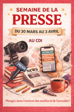 Du 30 mars au 3 avril se tiendra la semaine de la presse au CDI, avec une petite semaine de décalage par rapport à l’événement national. C'est l'occasion de venir découvrir des revues et pourquoi pas en emprunter quelques unes.